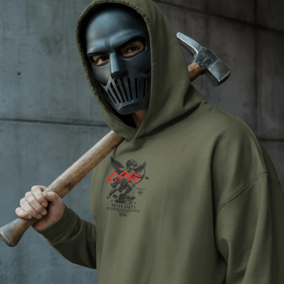 This hoodie comes loaded with attitude, starting with a sharp red “LOVE” hit on the front that looks anything but sweet. It’s bold, it’s clean, and it carries the kind of energy that says love isn’t soft… it’s powerful.